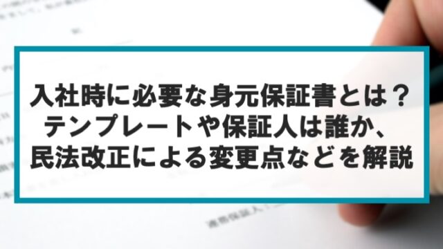 用語集 入社時に必要な身元保証書とは?テンプレートや保証人は誰か、民法改正による変更点などを解説 2022年4月24日 ミキワメラボ編集部 https://test-mikiwamelab.mimizukucrt.com/wp-content/uploads/2025/12/mikiwamelab_logo_s.png ミキワメラボ