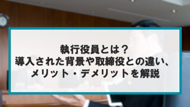 用語集 執行役員とは?導入された背景や取締役との違い、メリット・デメリット 2022年2月7日 ミキワメラボ編集部 https://test-mikiwamelab.mimizukucrt.com/wp-content/uploads/2025/12/mikiwamelab_logo_s.png ミキワメラボ
