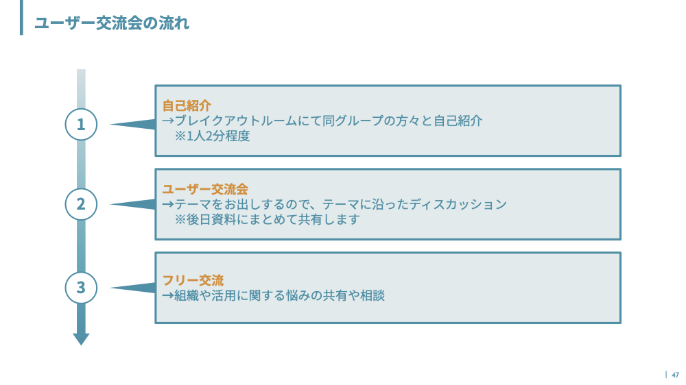 この会では参加者がカジュアルな雰囲気の中、それぞれの取り組みを発信し合い、他社の成功事例や課題解決の方法を学ぶことを目的としています。