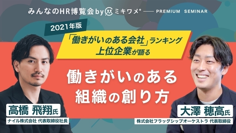 - 働きがいのある組織の創り方〜2021年版「働きがいのある会社」ランキング上位企業と考える〜【ナイル高橋氏・フラッグシップオーケストラ大澤氏】