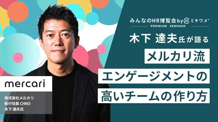 ご講演者:株式会社メルカリ/木下 達夫氏【みんなのHR博覧会 byミキワメ】 - 「最高のチームづくりはウェルビーイングから」 ご講演者:株式会社YeeY/島田 由香氏【みんなのHR博覧会 byミキワメ】