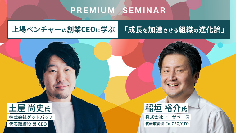 この時間は、上場ベンチャーの創業CEOに学ぶ「成長を加速させる組織の進化論」ということで、ベンチャー領域を代表すると言ってもいい2人の創業者にお越しいただきました。