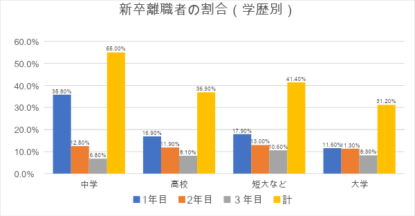 学歴別の新卒者離職率は以下のとおりです。
