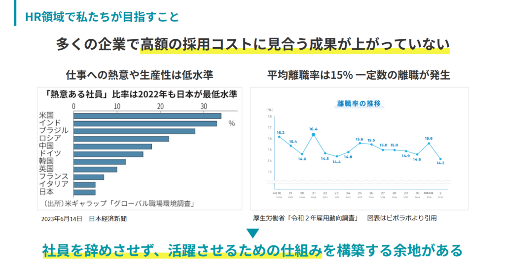 つまり、今の日本のHR領域には「社員を辞めさせず、活躍させるための仕組み」を構築する余地があるのです。