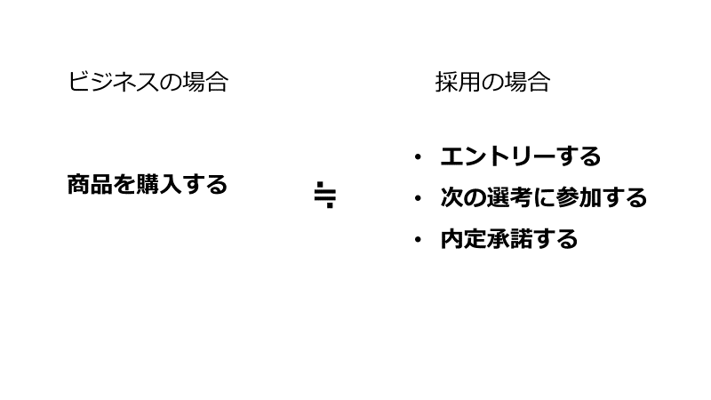 学生がエントリーすること、次の面接に参加すること、内定を承諾することは、一般のビジネスにおける「消費者が商品を買う」という行為になぞらえることができます。