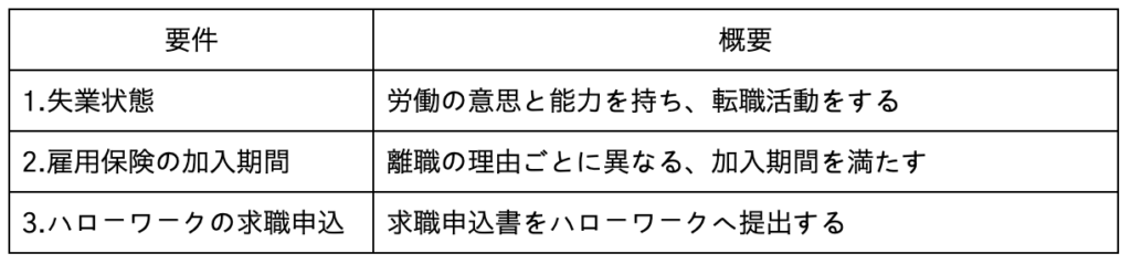 失業保険をもらうための3つの要件は以下のとおりです。
