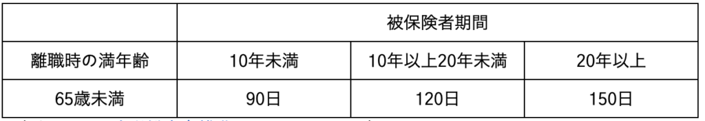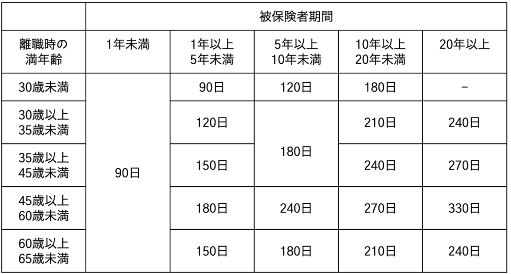 所定給付日数は離職理由により異なります。具体的には以下の表のとおりです。