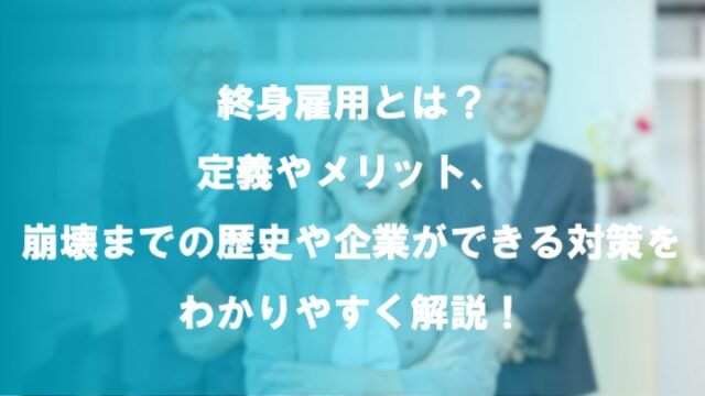用語集 終身雇用とは?定義やメリット、成り立ち、企業ができる対策とは 2024年2月12日 ミキワメラボ編集部 https://test-mikiwamelab.mimizukucrt.com/wp-content/uploads/2025/12/mikiwamelab_logo_s.png ミキワメラボ